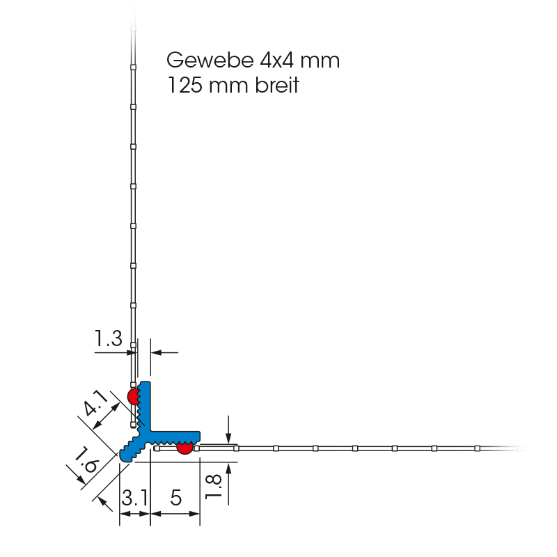 | Gewebe | Mindestens 160 g/m², zugelassen für Wärmedämm-Verbundsysteme; 2 × 12,5 cm breit; Maschenweite 4 × 4 mm; Ultraschallverschweißt |