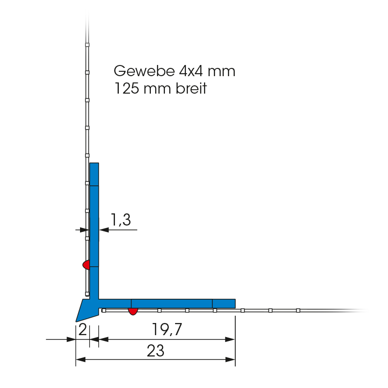 - Integriertes Gewebe: Zwei Gewebestreifen sind direkt am Profil angeschweißt – das vereinfacht die Montage und verbessert die Verbindung zum Armierungsgewebe.