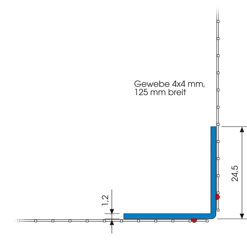 - ein integriertes Gewebe, das direkt mit dem Winkel verschweißt ist und somit für optimale Einbettung im Oberputz sorgt;