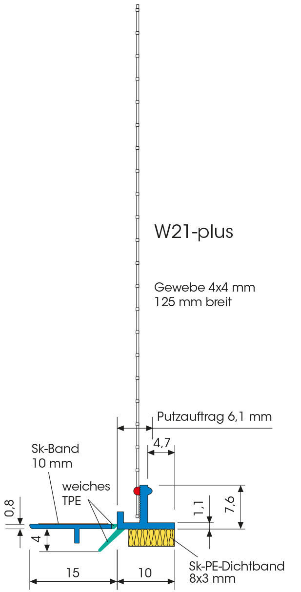 - robustes Profil verhindert Putzabplatzungen,